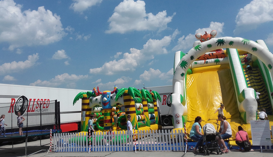 Légvárpark működtetése a szabadtéri rendezvényeken gyermekek számára, amelynek fő attrakciója a színes felfújható játékok.